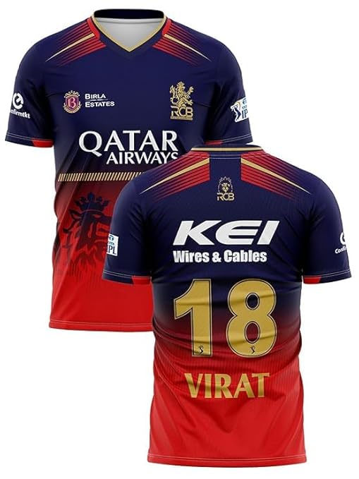 JUSBALL - New King VIRAT BANGALORE Cricket Jersey 2025/26 for (Kids & Mens) Home Blue